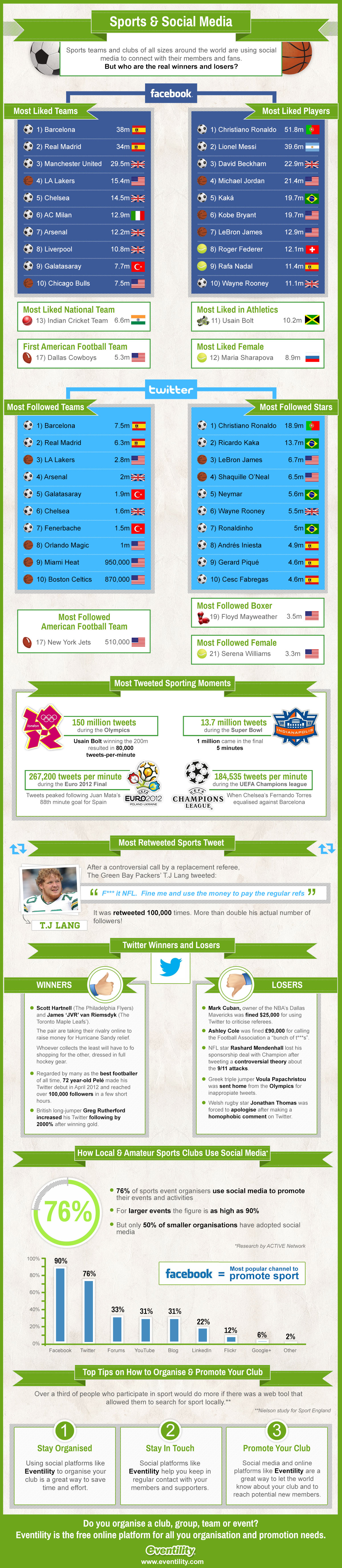 A continuación un infográfico elaborado por Eventility con los «ganadores y perdedores» de los social media deportivos.